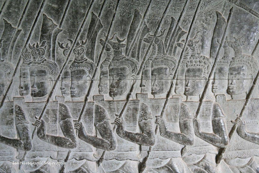 "Soldiers also move about unclothed and barefoot. In the right hand is carried a lance, in the left a shield. They have no bows, no arrows, no slings, no missiles, no breastplates, no helmets. I have heard it said that in war with the Siamese universal military service was required. Generally speaking, these people have neither discipline nor strategy."