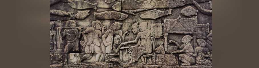Seitenkopf: Angkor Thom, Bayon, Relief, Marktszene und lokale Fischarten | Quelle